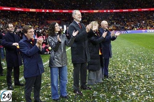 Ayuso y Almeida aplauden el triunfo de la Selección Femenina frente a Alemania en el Metropolitano.