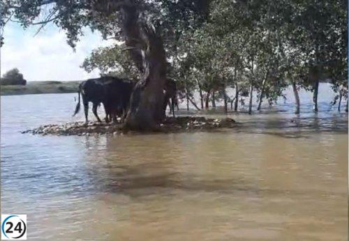 Bomberos de Ciempozuelos brindan apoyo alimentando reses bravas aisladas por la lluvia