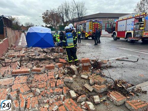 Peatones afectados por el colapso de un muro en Getafe.
