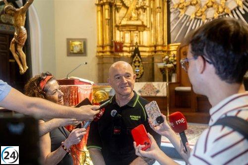 Un bombero del 11-M reitera la tradición familiar al retirar el cuadro de La Paloma en unas fiestas madrileñas.